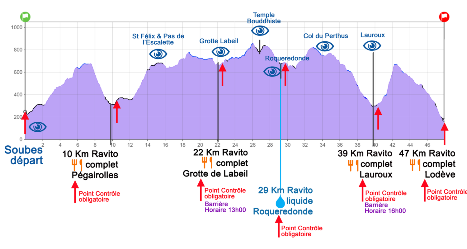 Détails du grand parcours de 47km de l'édition 2026 du Trail les Terrasses du Lodévois.